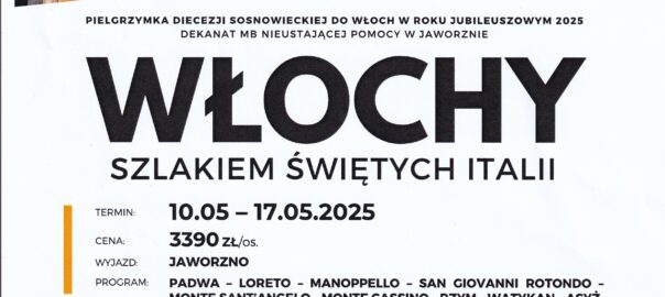 Szczęść Boże. Zostały ostatnie wolne miejsca na Pielgrzymkę do Włoch – Szlakiem Świętych Italii w terminie 10.05 do 17.05.2025r Program Pielgrzymki – POBIERZ