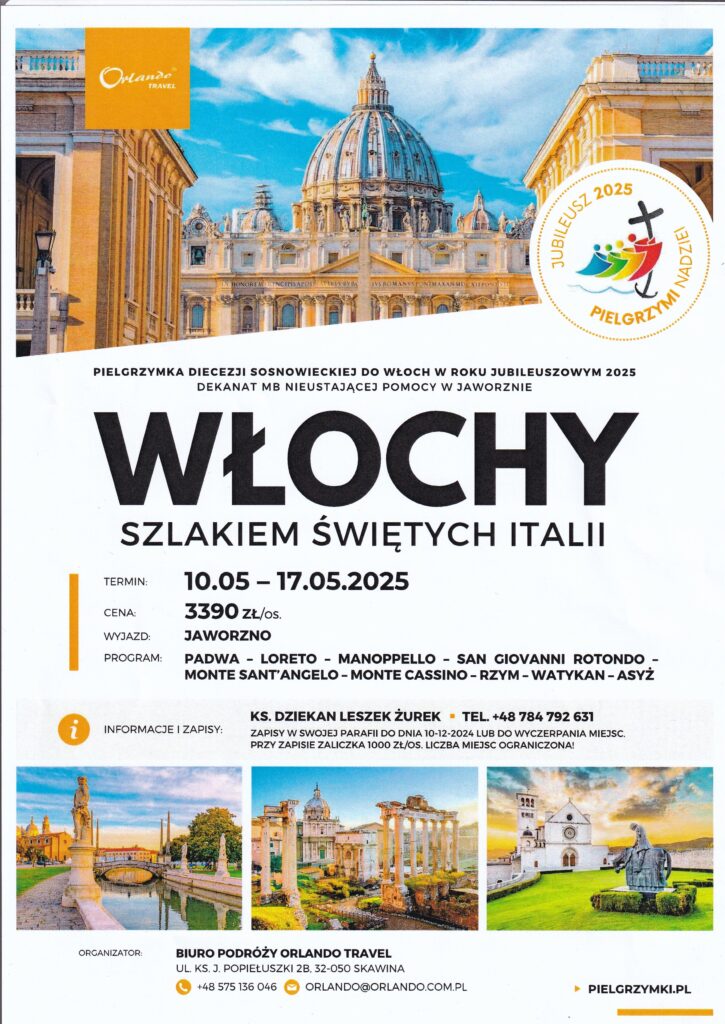 Szczęść Boże. Zostały ostatnie wolne miejsca na Pielgrzymkę do Włoch – Szlakiem Świętych Italii w terminie 10.05 do 17.05.2025r